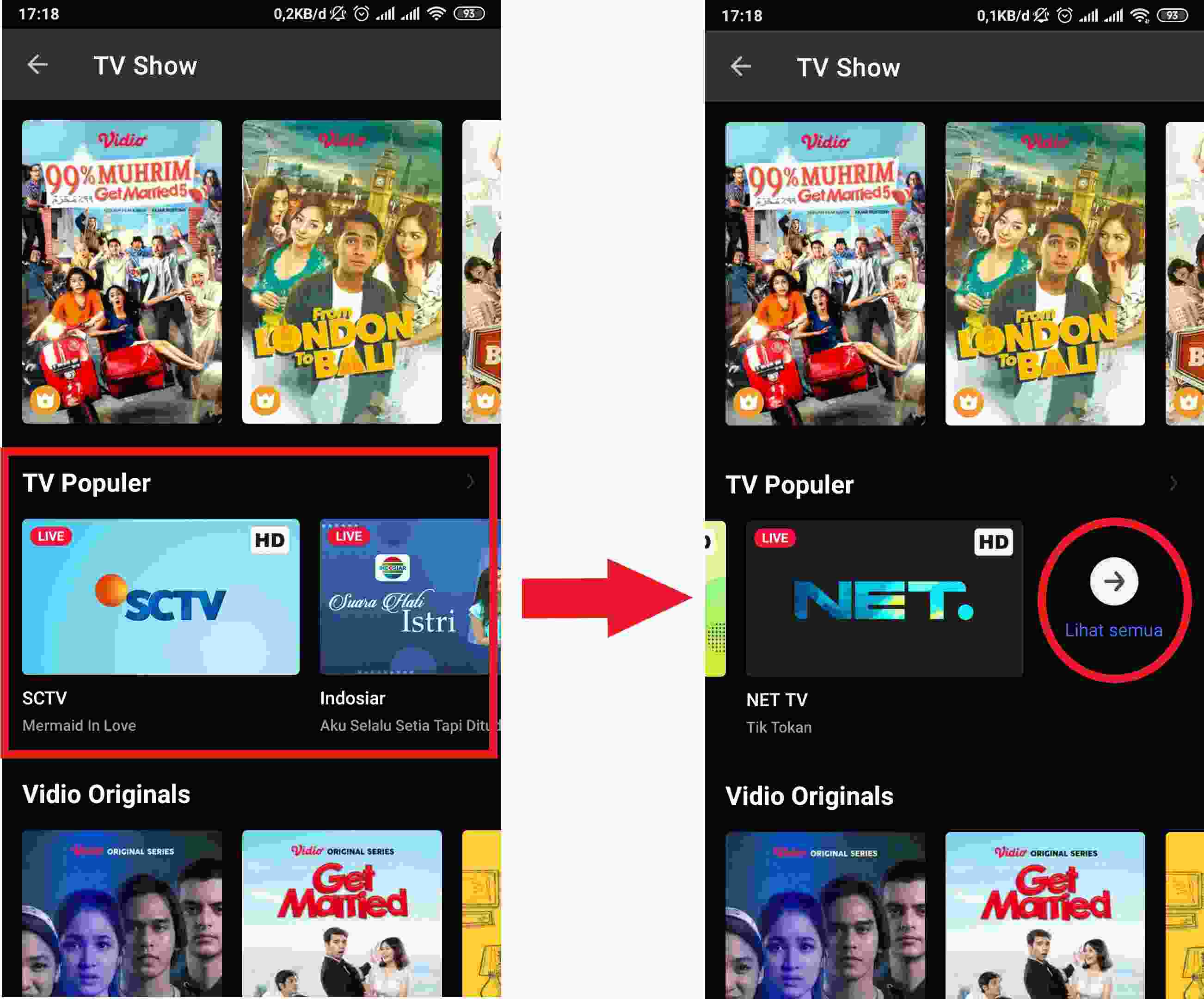 3. Lalu pada baris “TV Populer“, kamu geser ke kiri sampai ada tombol Lihat Semua.