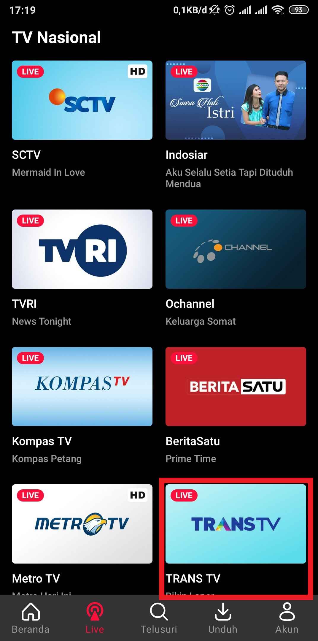 4. Disitu kamu akan melihat banyak sekali channel televisi nasional seperti layaknya kita menonton televisi biasa. kamu tinggal pilih salah satu channel saja unuk langsung menontonnya.