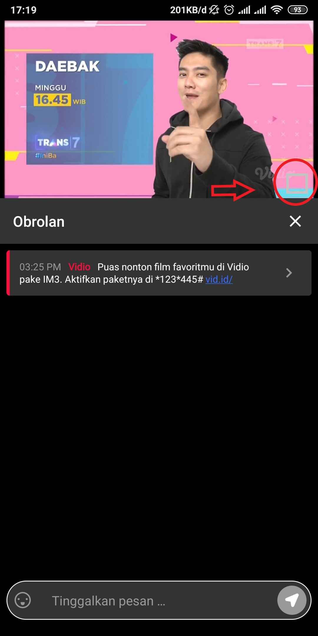 5. Kamu akan masuk dan langsung menonton siaran langsung nya. Disitu juga ada live comment bagi kamu yang ingin berdiskusi mengenai siaran langsung nya. Untuk masuk ke mode fullscreen kamu pilih tombol kotak yang ada di bagian kanan bawah layar videonya.