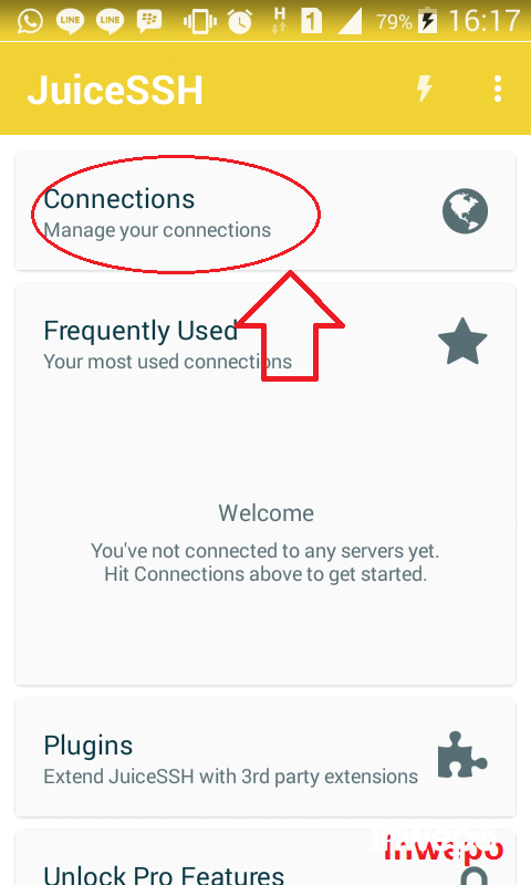 2. Jalankan aplikasi JuiceSSH lalu pilih menu Connections.