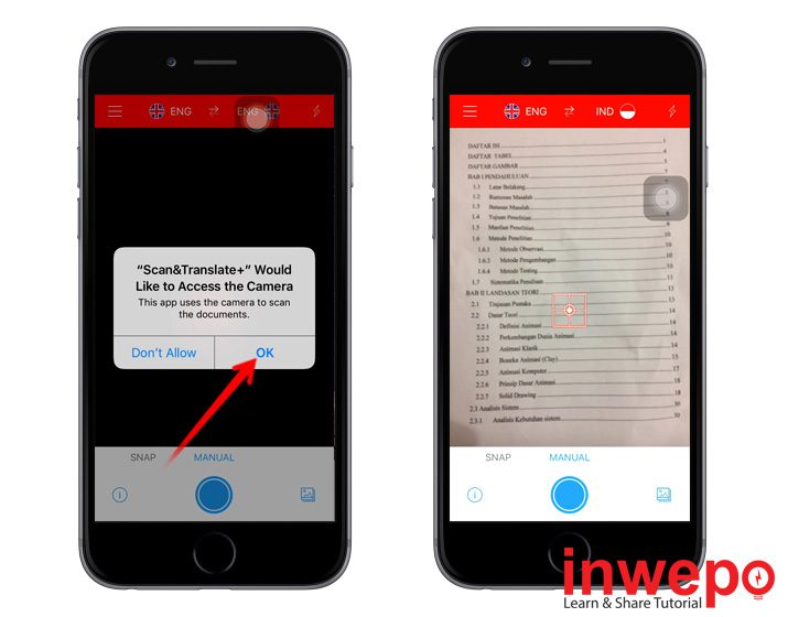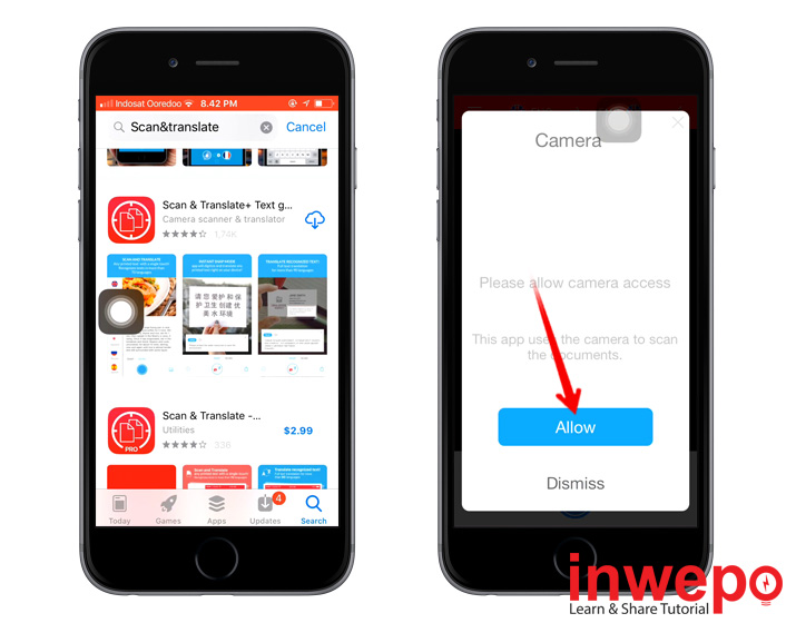 1. Unduh aplikasi Scan&Translate+ di App Store – Selesai unduh, buka aplikasi Scan&Translate+ – ketuk Allow.