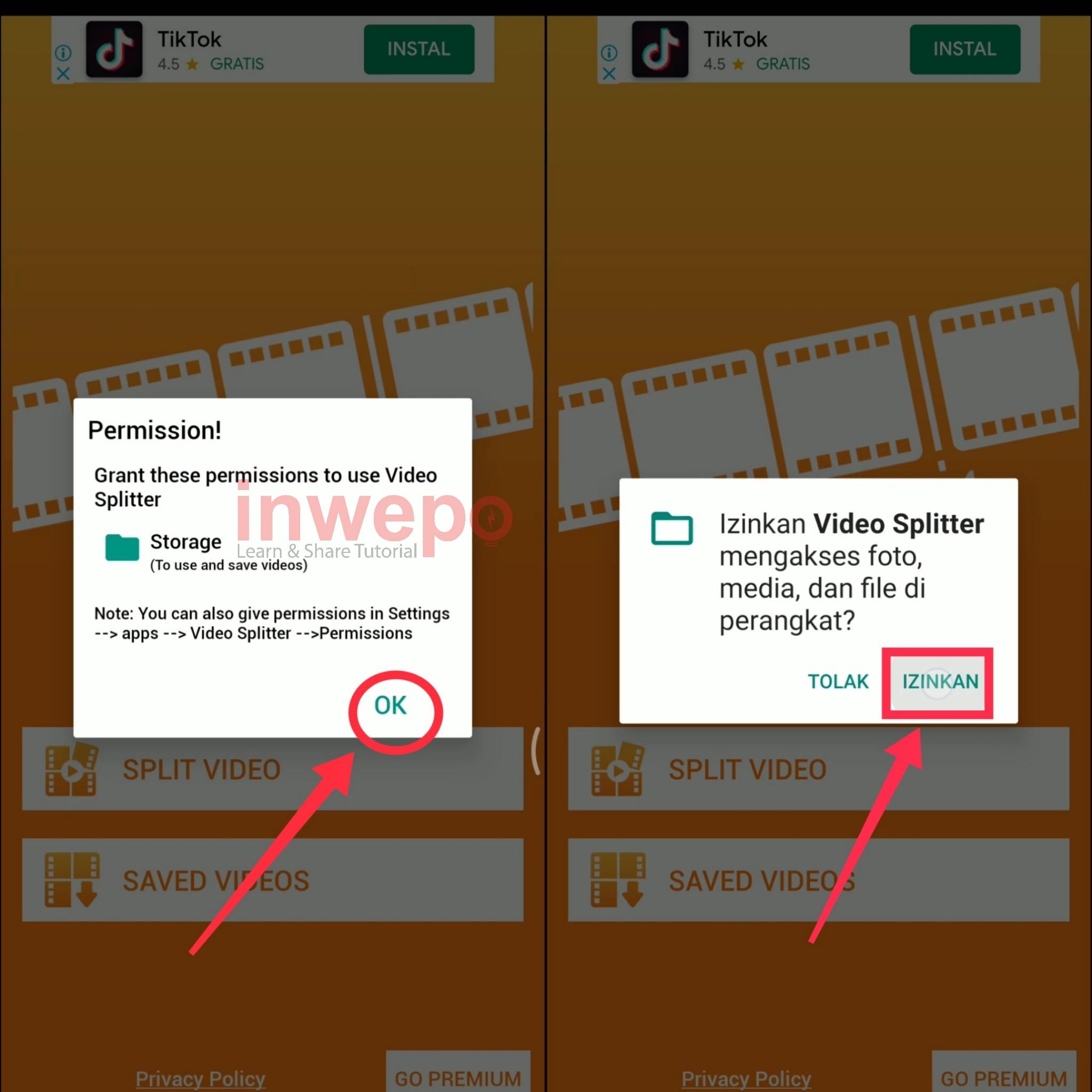 2. Langkah kedua, jika sudah langsung buka aplikasinya kemudian tap menu OK selanjutnya beri izin akses pada aplikasi dengan tap Izinkan.