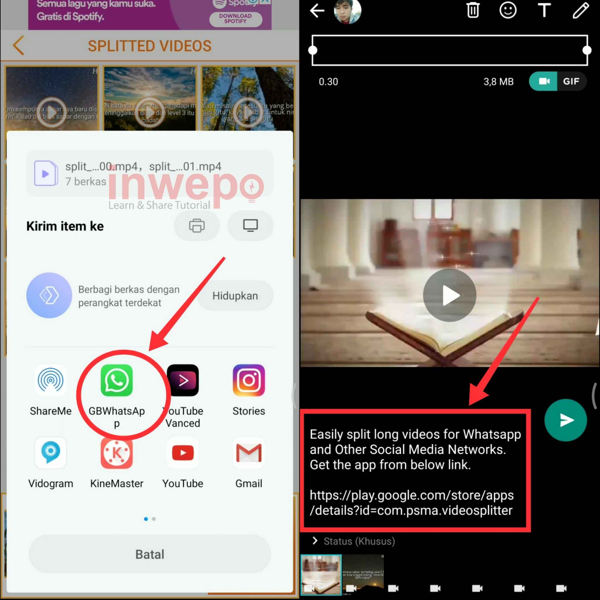Ingin mengirim video ke status tapi durasi terlalu panjang? Bingung bagaimana agar memotong durasinya agar tetap bisa di buat Story? Nah, kali ini inwepo akan share tipsnya agar kamu bisa membagi video panjang tersebut ke status kamu dengan mudah.