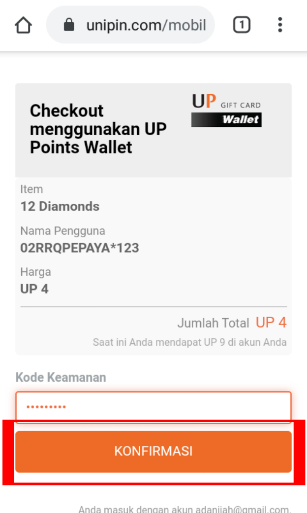 8. Di halaman selanjutnya, masukan kode keamanan akun UniPin kamu untuk melanjutkan transaksi.