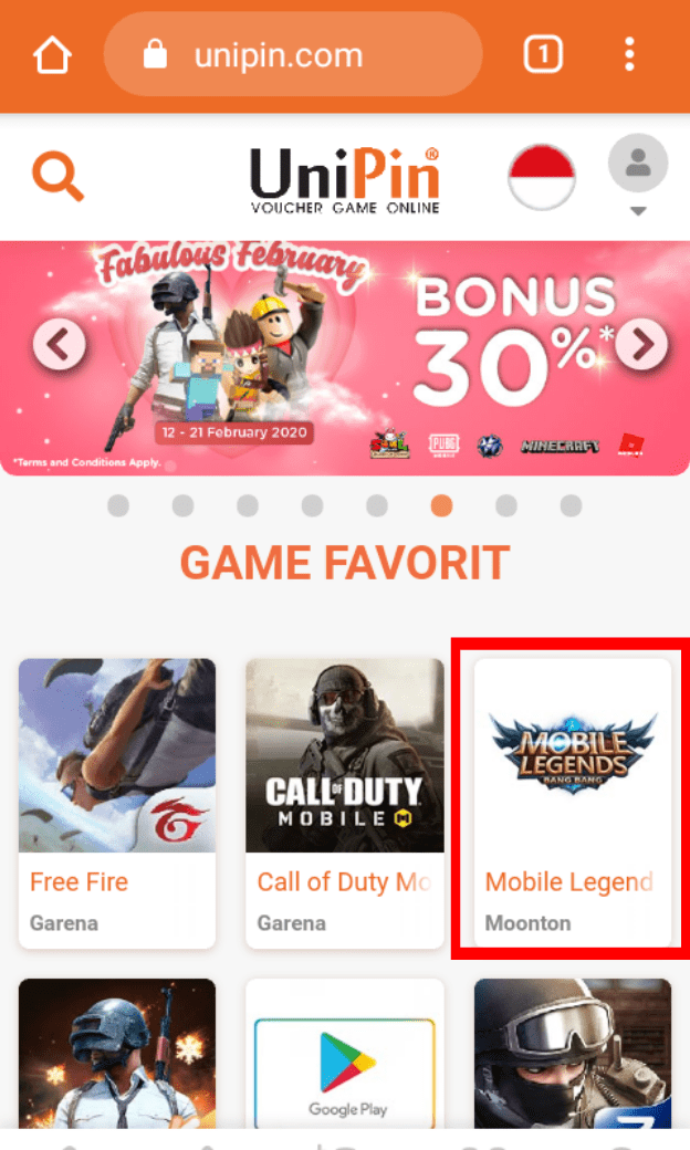 5. Setelah berhasil log in, kembali ke Homepage website dan pilih game Mobile Legends.
