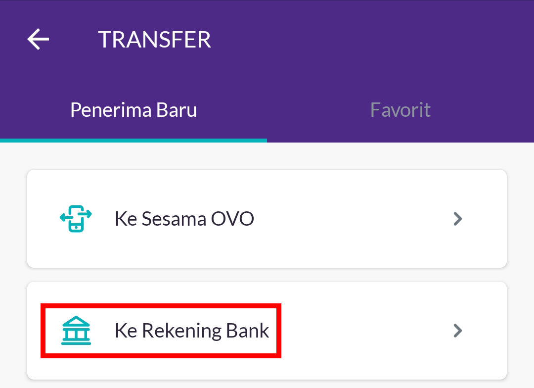 3. Klik Ke Rekening Bank.