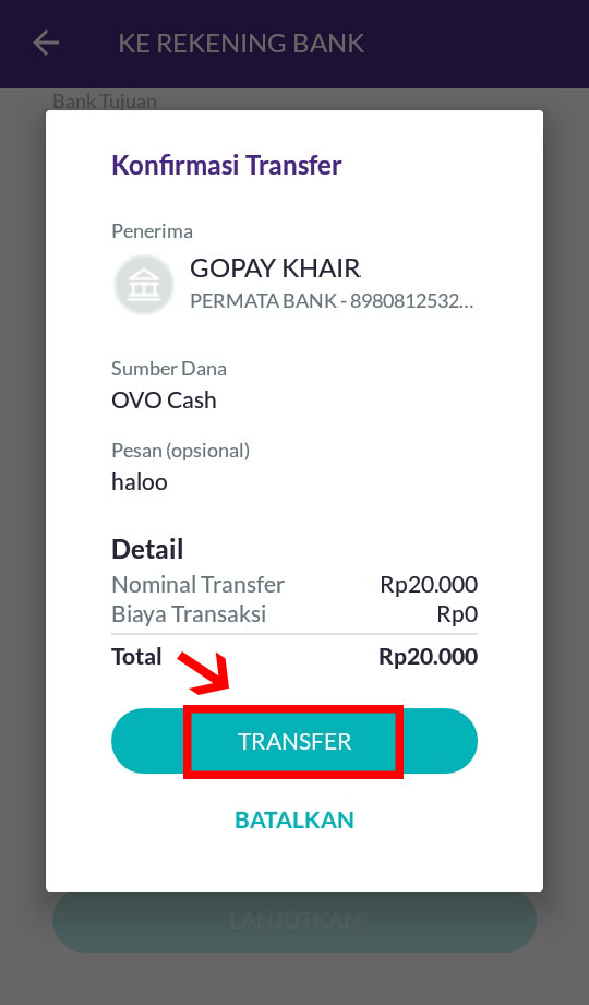 7. Terakhir konfirmasi transfer.