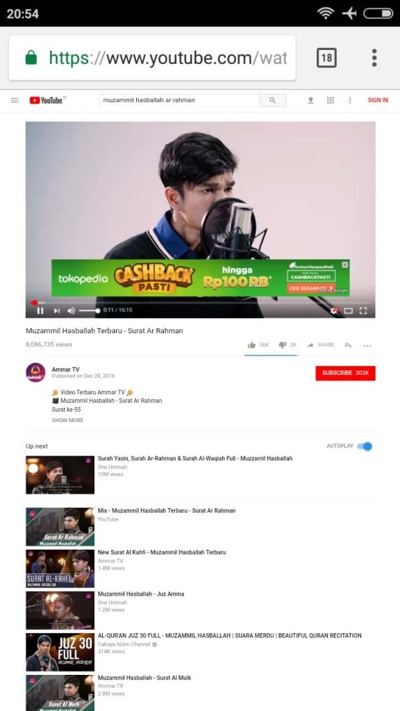 3. Pada kolom pencarian tulis “YouTube.com” lalu pilih salah satu video untuk diputar.