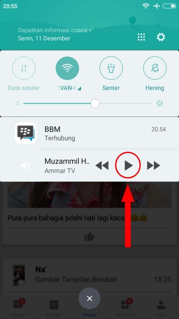 4. Sekarang kamu bisa coba berpindah menggunakan aplikasi lain seperti WhatAapp Instagram dan lain-lain. Untuk pertama kali perpindahan mungkin video akan terhenti. Tidak perlu panik cukup scroll kebawah notif bar dan tap pada icon play maka video kamu akan mulai lagi dan kamu bisa streaming sambil melakukan aktifitas lain.