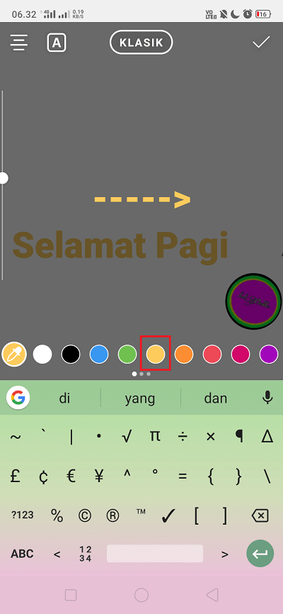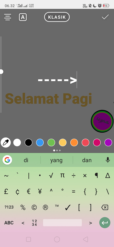 Posisikan letak teks di Instastory. Klik ikon ‘Teks’ untuk membuat tanda panah.
