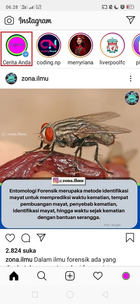 11. Selesai, klik ikon ‘Cerita Anda’ untuk meng-upload prank kamu di InstaStory.