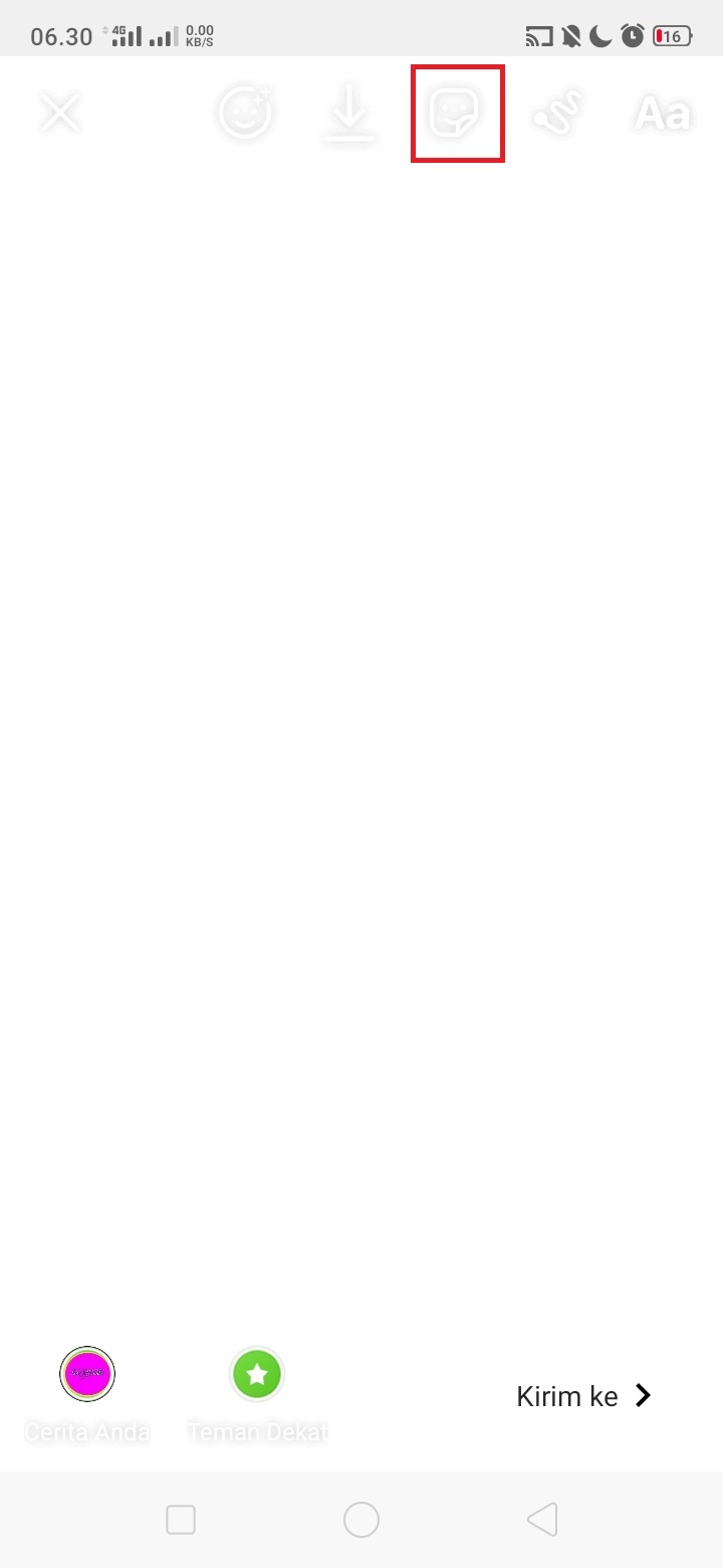 6. Klik ikon ‘Stiker’ di menu atas InstaStory.