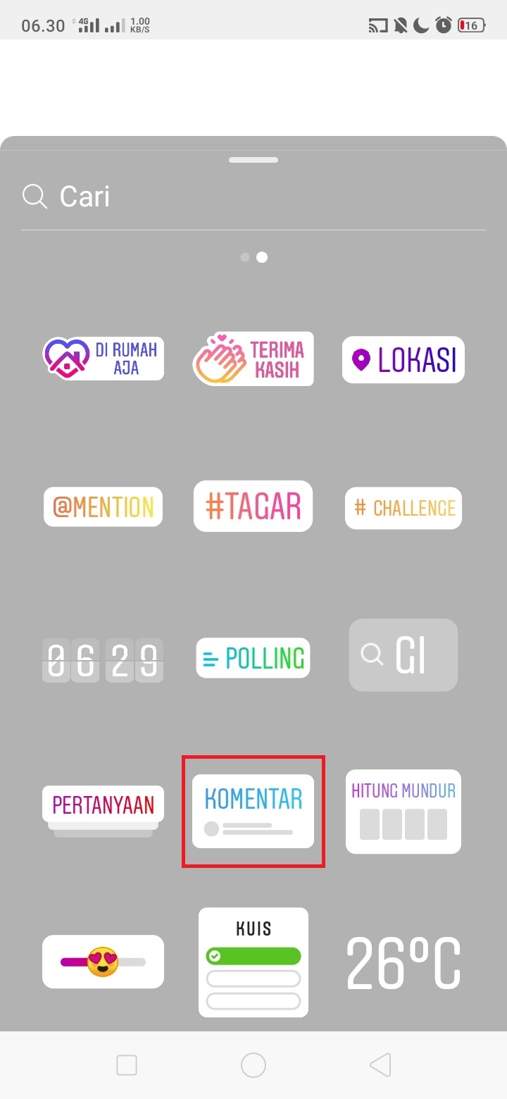 7. Pilih stiker ‘Komentar’.