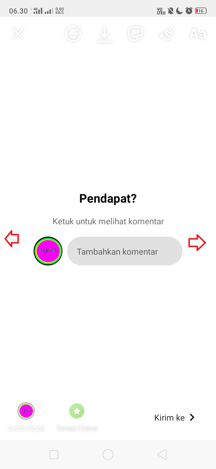 Posisikan letak tanda panah di Instastory.