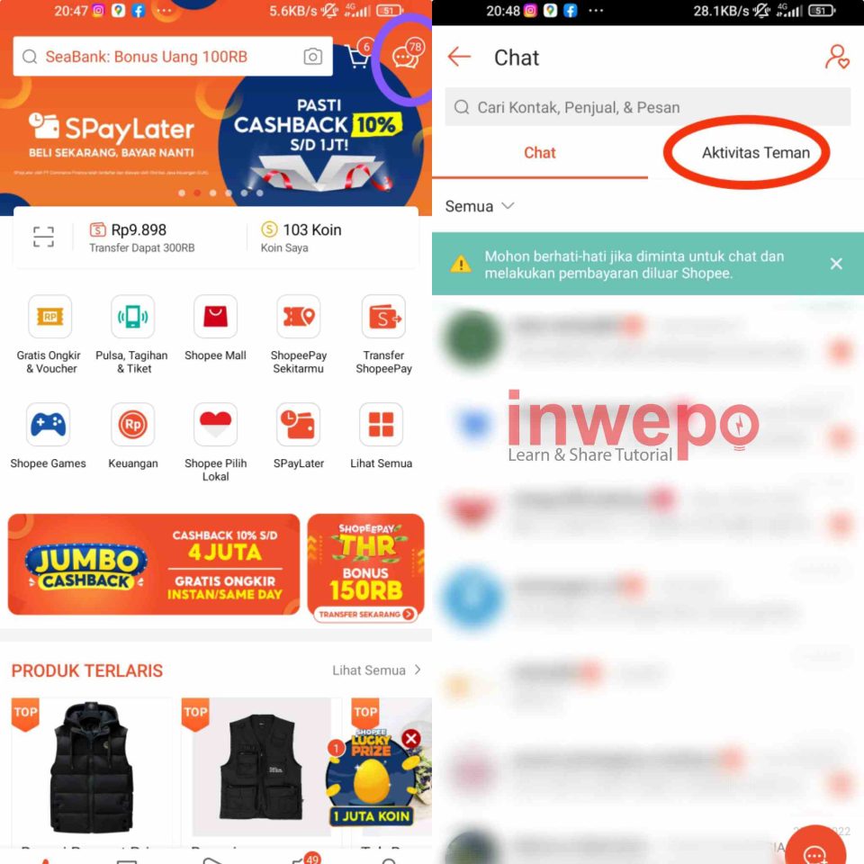 Shopee punya fitur yang cukup unik yakni soal aktivitas pengguna. Namun, bagi sebagian pengguna aktif Shopee mungkin fitur tersebut cukup menganggu. Jadi pada artikel di bawah ini inwepo akan membagikan tutorial bagaimana cara menonaktifkan fitur-fitur di aktifitas pengguna.