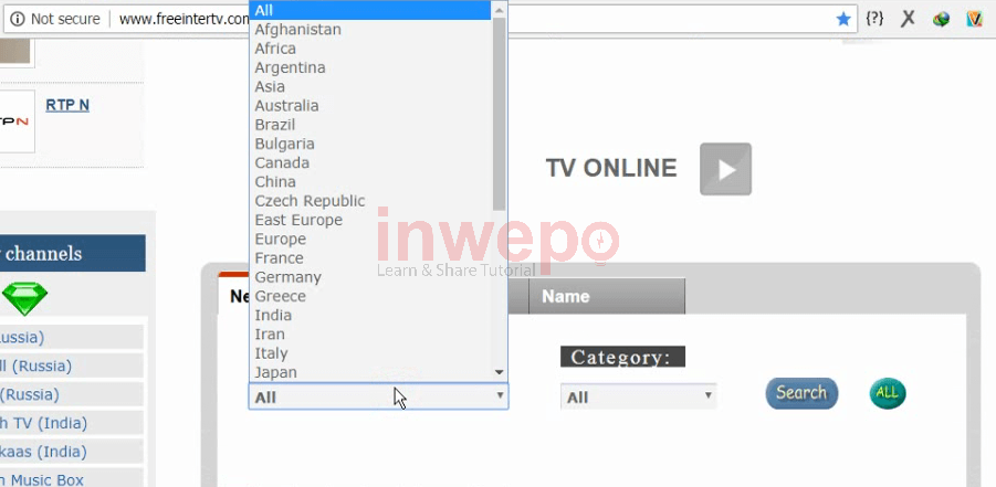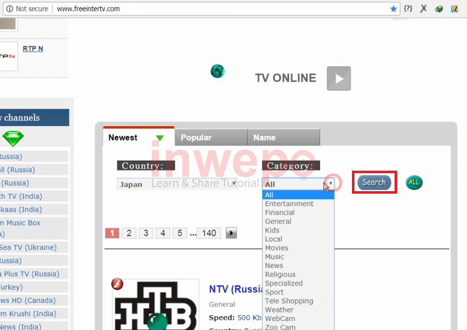 3. Dan kamu pilih kategori saluran yang kamu cari lalu klik tombol search.