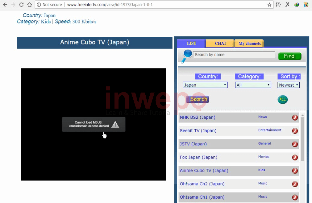 Catatan: Jika kamu mendapatkan masalah seperti pada gambar di bawah, maka saluran televisi tersebut sedang offline atau sudah tidak menyediakan layanan free streaming lagi sehingga kamu harus menonton saluran lain.