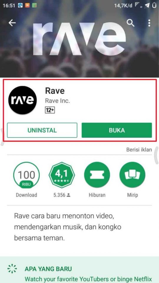 1. Pertama-tama kamu harus terlebih dahulu mendownload dan menginstall aplikasi Rave di Play Store.