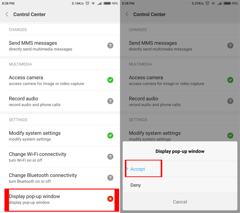 3. Tap pada Display pop-up windows (Tampil jendela pop-up) dan pilih Accept atau Terima.