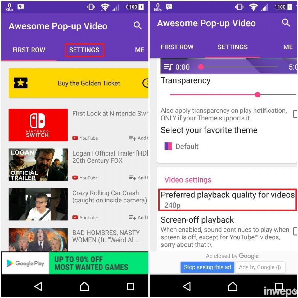 3. Untuk menghemat kuota data yang Anda miliki, ubah pilihan Preferred playback quality for videos dari 720p menjadi 240p atau 360p.
