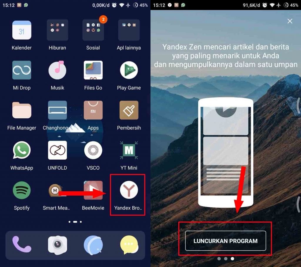 2. Setelah terinstall dengan baik, buka aplikasi Yandex Browser lalu tap LUNCURKAN PROGRAM.