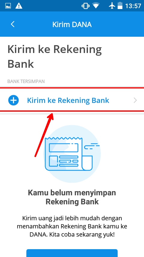4. Selanjutnya, pilih tulisan ‘Kirim ke Rekening Bank’ untuk menambahkan nomor rekeningnya.