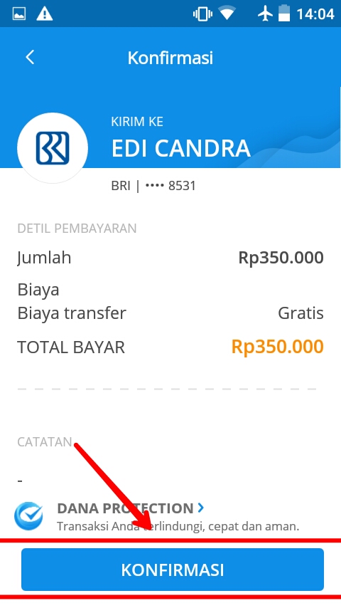 8. Jika sudah, pilih ‘Konfirmasi‘ untuk melanjutkan transaksi.