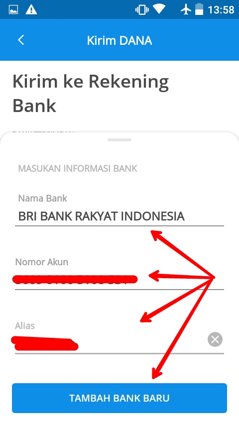 5. Setelah itu, isi Nama Bank, Nomor Rekening dan Nama Penerima.