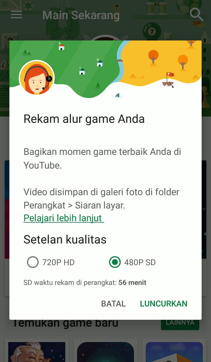 Lalu kamu akan diminta untuk memilih resolusi perekaman, 480px atau 720px, jika sudah tap Luncurkan.