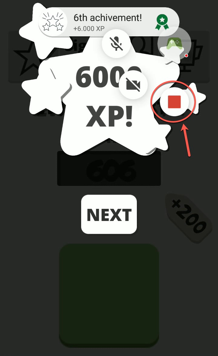 8. Jika kamu sudah selesai dengan hasil perekaman game-nya, kamu biasa tap tombol icon Google Play Games dan tap tombol icon stop warna merah.