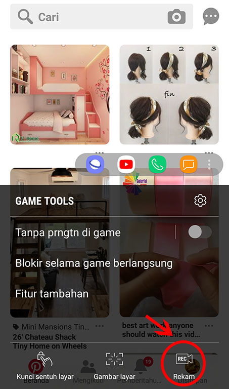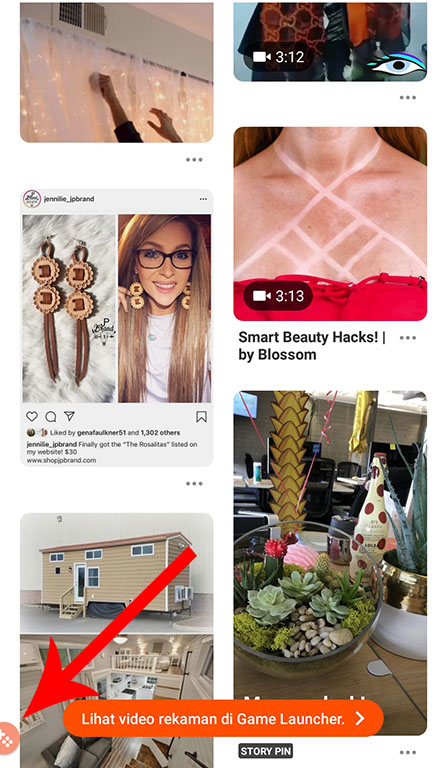 6. Selanjutnya, buka aplikasi yang akan di screen record (sebagai contoh Pinterest) pastikan kamu membukanya melalui aplikasi Game Launcher.