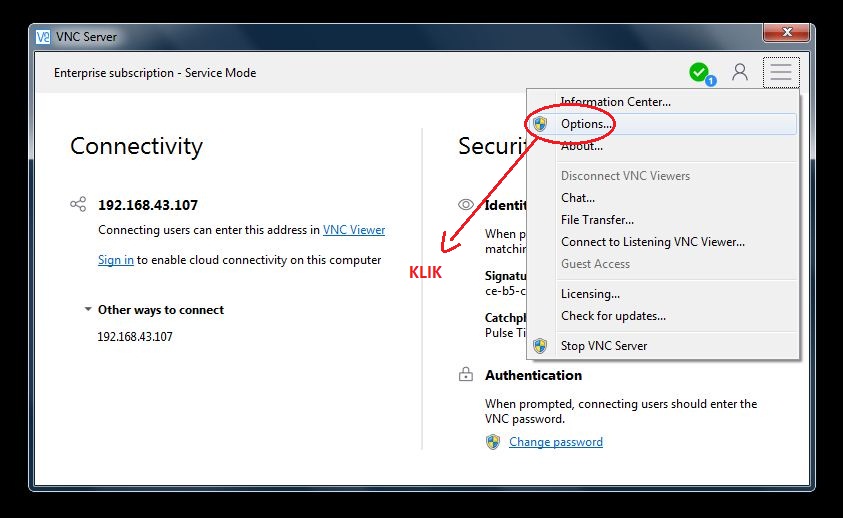 Atur password VNC Server di Laptop atau PC kamu seperti ini.