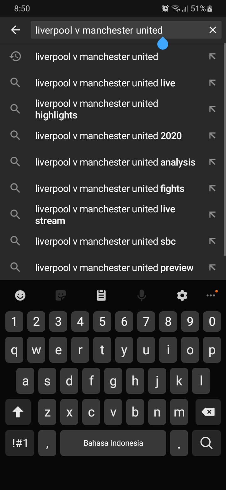 2. Ketikkan judul video yang diinginkan untuk di-repeat, kemudian tap icon kaca pembesar pada keypad.