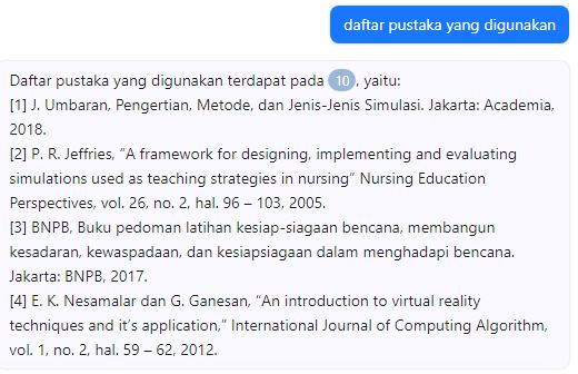 5. Penulis coba menggunakan pertanyaan lain seperti Daftar Pustaka yang digunakan. Dan hasilnya seperti ini. Masih bekerja dengan baik