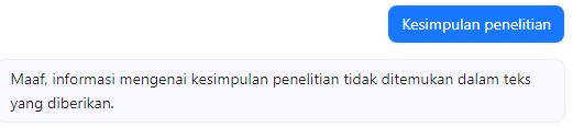 6. Meskipun powerful, nyatanya website ini masih butuh banyak pengembangan. Saat penulis mencoba bertanya tentang kesimpulan penelitian, hasilnya malah seperti di bawah ini. Tapi. meskipun belum sempurna, secara garis besar website ChatPDF ini dapat diandalkan.