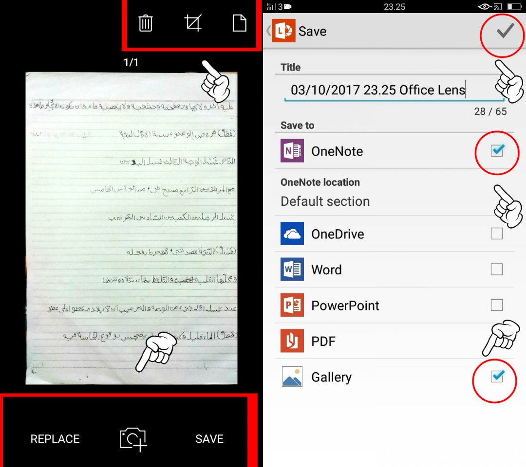 Jika gambar sudah sesuai, pilih saja simpan. Namun sebelum itu, jika kamu tidak punya akun one note, hapus tanda ceklis pada kolom di sampingnya, dan tap tombol ceklis pada kolom save.