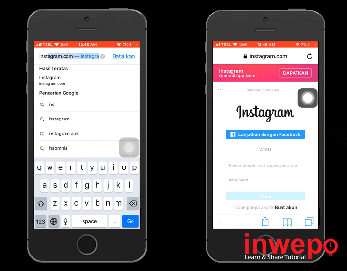 1. Buka Safari – masuk ke situs Instagram.com – login ke akun Instagram kamu.