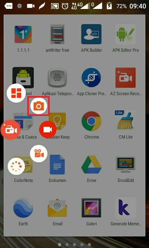 3. Tekan ikon Float button – Pilihlah ikon Kamera / Screenshot untuk menangkap layar (screenshot) smartphone.