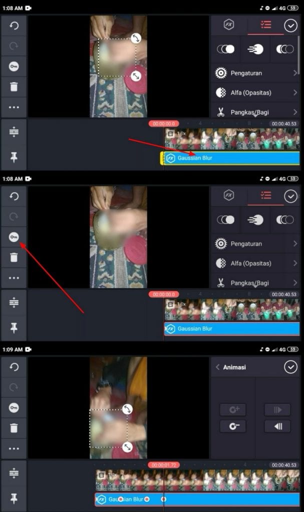 6. Dan untuk menyortir objek yang akan di sensor, setelah efek blur aktif, klik icon kunci. Lalu jalankan secara perlahan, ikuti dan tutupi objek yang akan di sensor sampai durasi waktu yang kamu butuhkan.