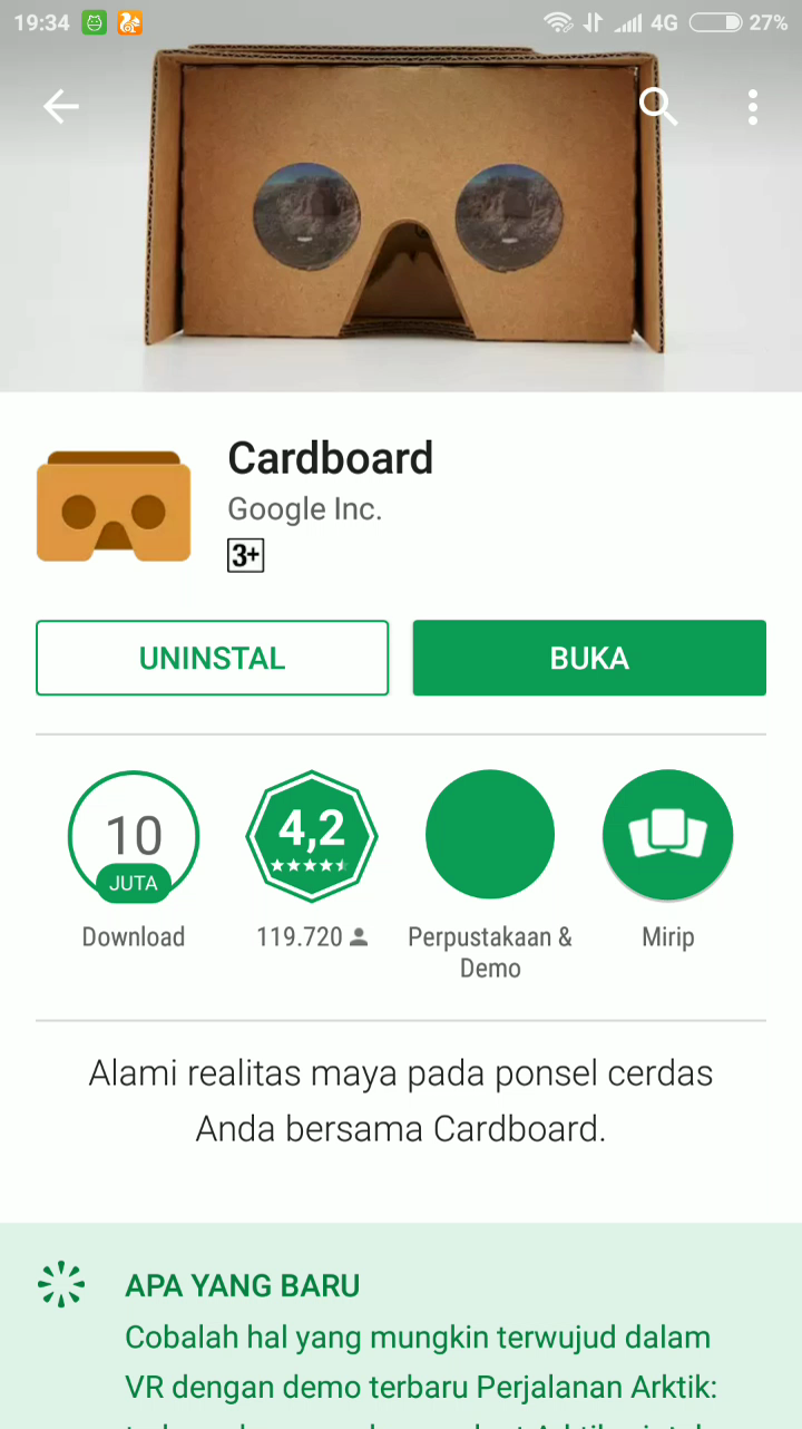 1. Install aplikasi Cardboard di Android.