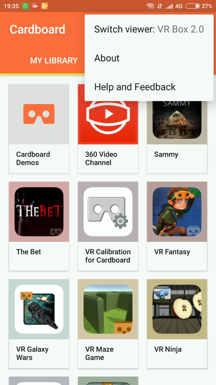 2. Buka aplikasi Cardboard, tap menu titik 3 yang ada disudut kanan atas.