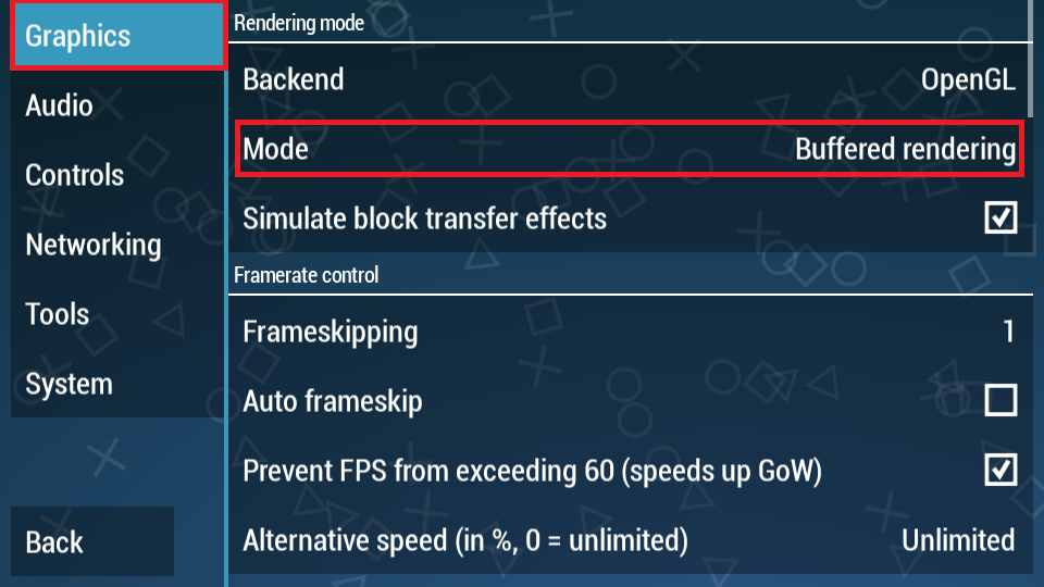 9. Langkah terakhir, kita kembali ke bagian Graphics, lalu klik Mode dan ubah menjadi Skip buffer effects.