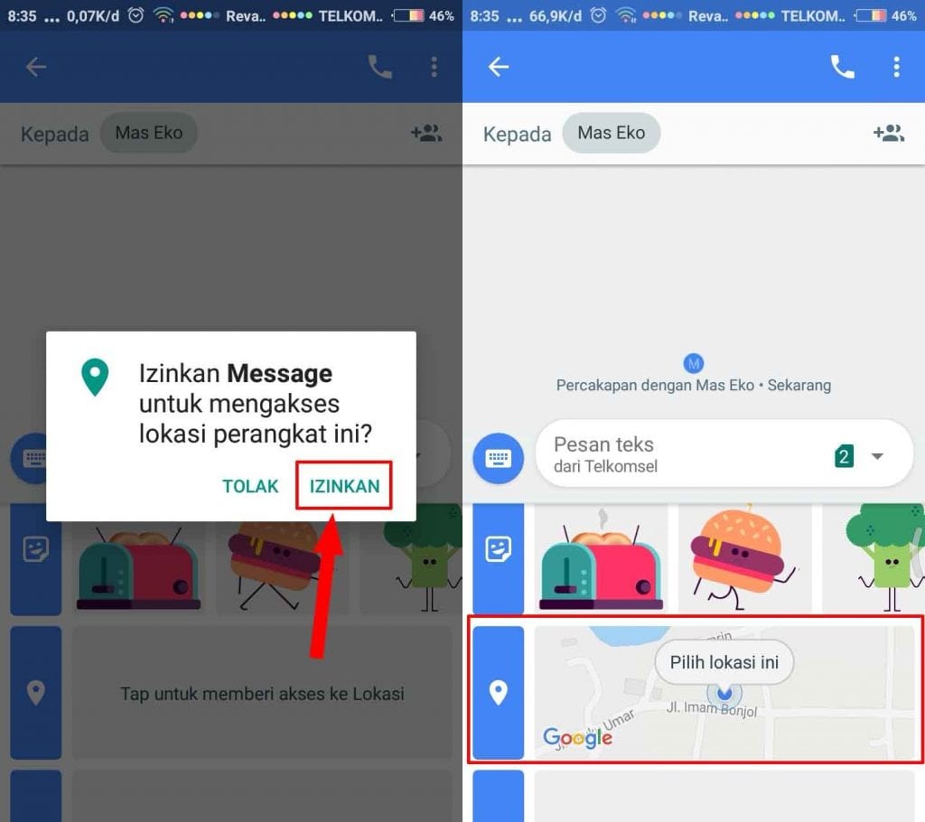 4. Akan muncul notif untuk izin akses, pilih IZINKAN, lalu tap Pilih lokasi ini.