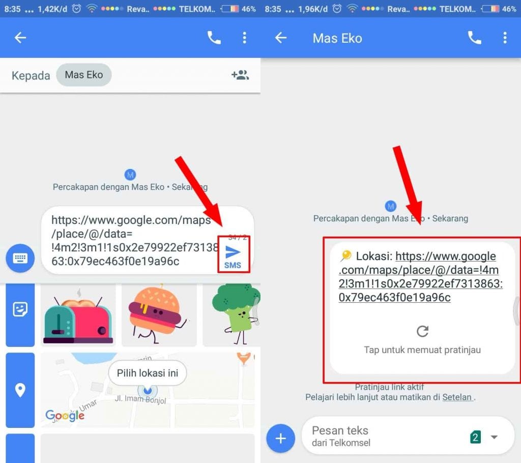 5. Kirim pesan seperti biasanya nanti si penerima akan menerima sebuah link dari SMS kamu yang langsung menuju ke Google Map.