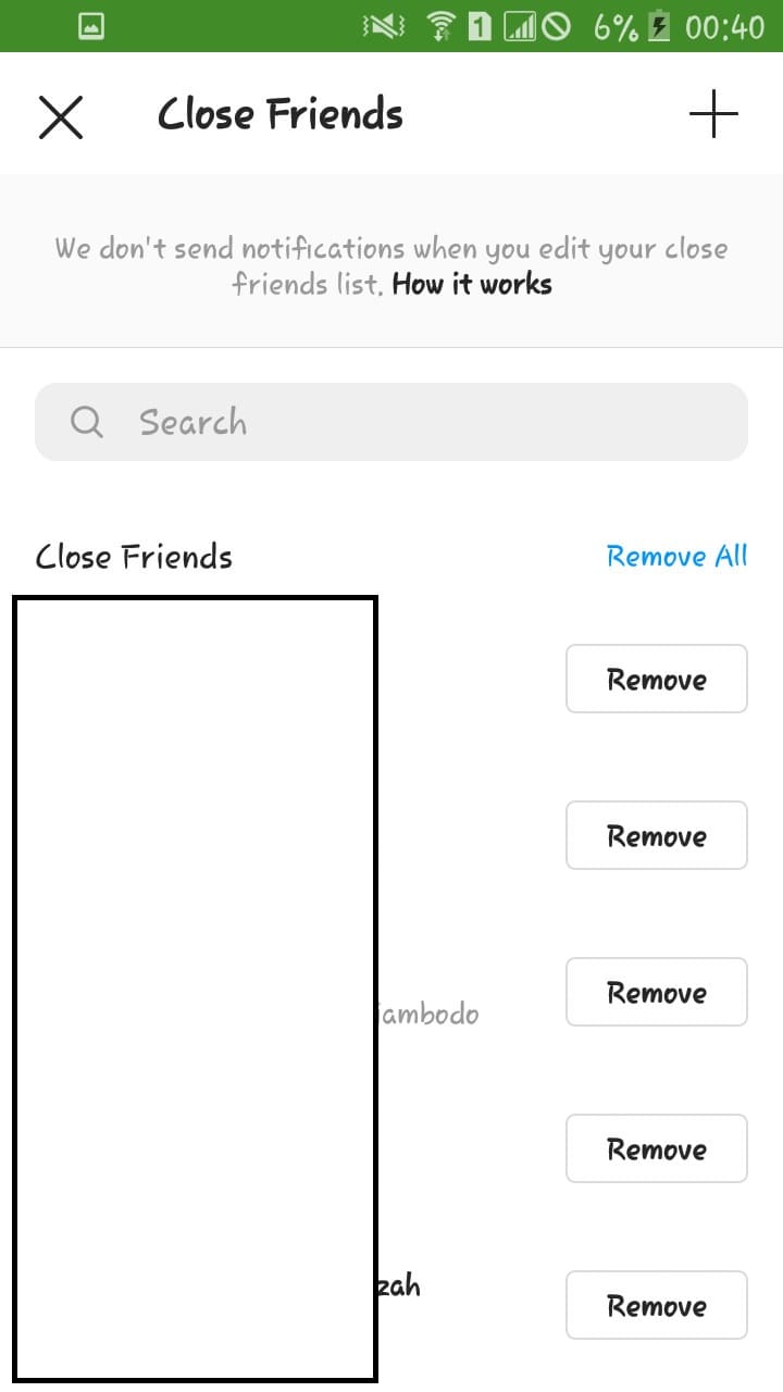 7. Apabila kamu ingin memperbarui daftar Close Friends kamu sebelum membagikan status tersebut, maka tekan bagian Close Friends. Kamu bisa gunakan fitur search untuk menambahkan akun baru dalam daftar, atau remove akun yang sudah terdaftar di close friends.