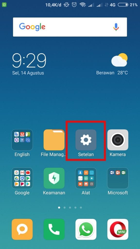 1. Aktifkan terlebih dahulu Opsi Pengembang di Android kamu dengan cara masuk ke Setelan.