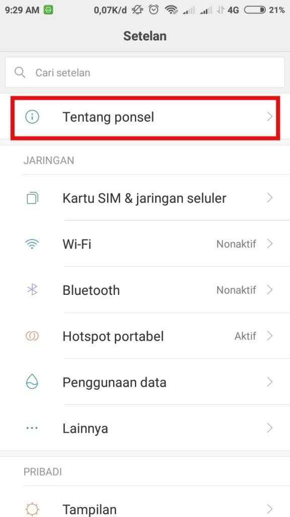 2. Tap pada Tentang Ponsel.