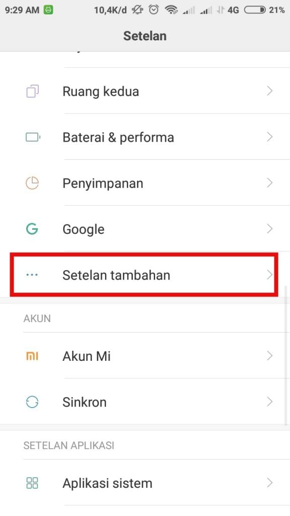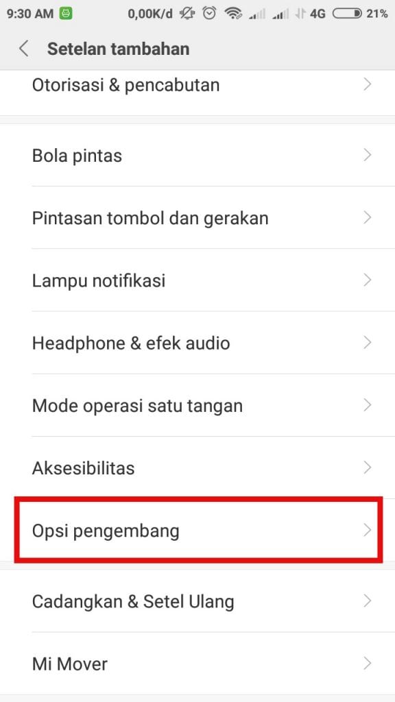 4. Opsi Pengembang sudah aktif, sekarang ke Setelan Tambahan.