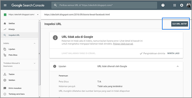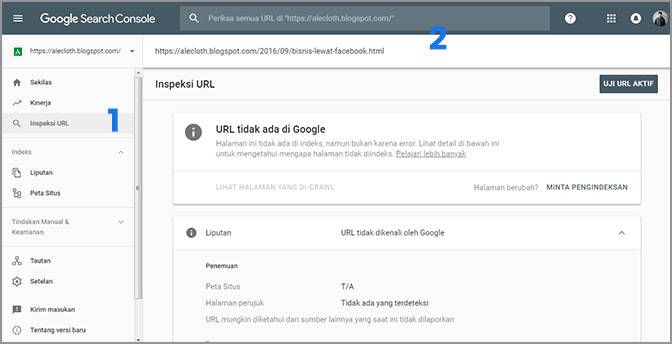 2. Klik inspeksi URL, kemudian masukkan link artikel.