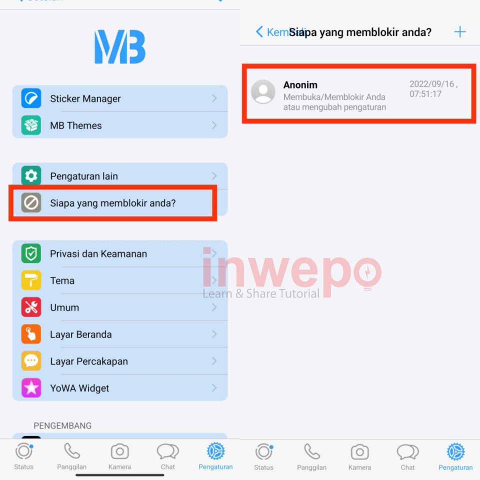 3. Tap menu siapa yang memblokir anda, selanjutnya kalian akan melihat siapa akun yang memblokir nomor WhatsApp kamu di sertai dengan tanggal dan jam.